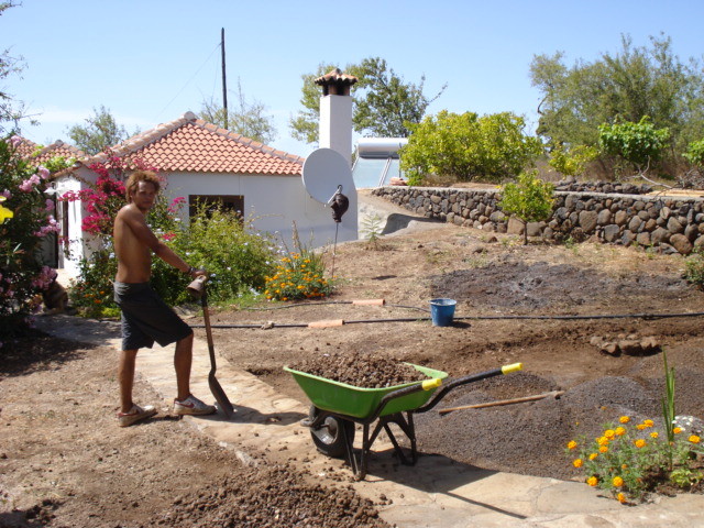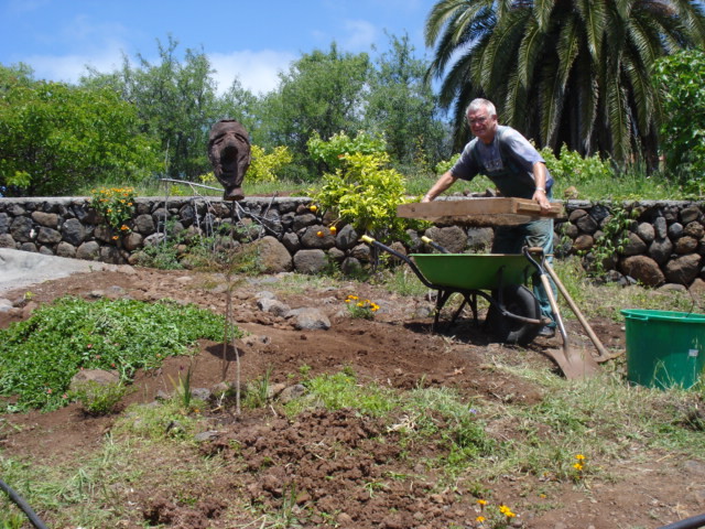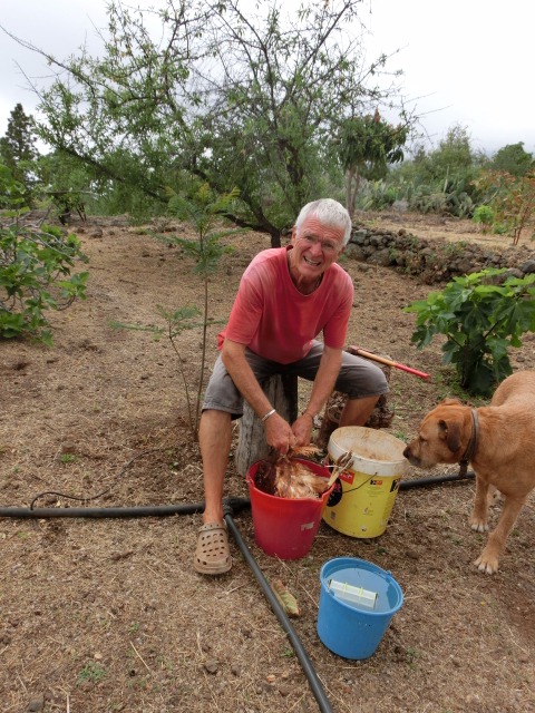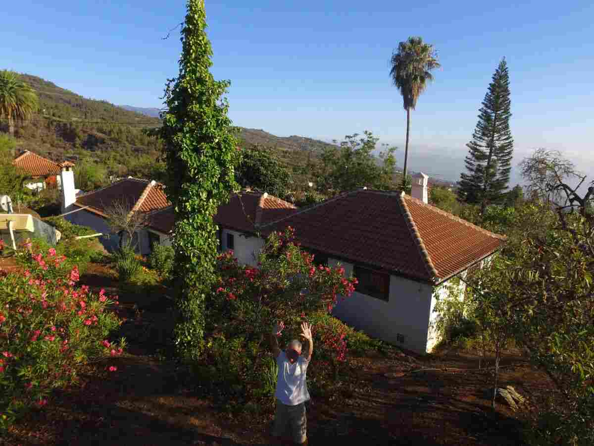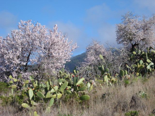 Die Finca liegt auf genau 700 m.ü.M. im Ortsteil El Jesús der Gemeinde Tijarafe. Auf knapp 8.000 qm wachsen vor allem Mandeln, Kakteenfeigen, Feigen, Avocados, Aprikosen und hoffentlich bald auch Mangos, Kiwis, Pfirsische und Pflaumen. Die vielen wilden Mandelbäumchen lassen sich wunderbar mit anderem Kernobst ( Pflaumen, Pfirsische, Aprikosen, Zwetschgen etc.) veredeln und nach und nach soll es also eine Obstfinca werden. Gemüseanbau ist schwierig, da Tijarafe mit zu den trockensten Orten der Insel zählt und auch die vielen wilden Kaninchen fressen oftmals in einer Nacht die Mühen von Wochen und Monaten.