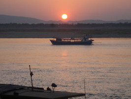 Am besten gefiel mir in Mandalay das Leben am Irrawady-Fluß, der Lebensader des Landes. Es gibt keinen richtigen Hafen, die Boote, Fähren und Lastkähne scheinen alle noch aus vergangenen Zeiten zu stammen und werden vom Ufer aus mit Stegen oder Brücken be- und entladen. Ein ganz archaisches Bild, erinnerte mich an eine alte Lithographie von Boppard/Rhein, als im 18. und 19. Jahrhundert auch dort noch direkt am Ufer entladen wurde.